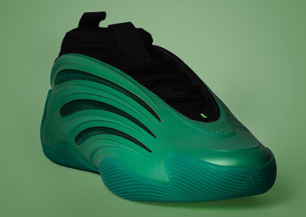 The direct inspiration for this green-shaded collection of adidas Basketball sneakers, which includes the AE 1 Low, Dame 9, DON Issue 6, Harden Vol. 9, and Adizero Select 3.0, comes from the evolution of athlete's craft and how they evolved to reach the pinnacle of their sport. On top of this, impactful performances and star-making moments from March Madness helped inspire the color-shifting, pearlescent, and glossy finishes applied across all of the sneakers. We also can’t ignore the coincidence that the pairs launch just days ahead of St. Patrick’s Day and come coated in colors that perfectly celebrate the holiday.