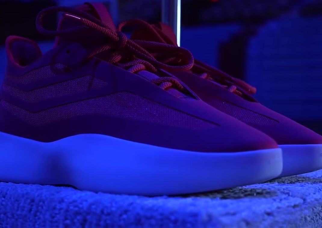 The sneaker retains its performance-oriented design and technical features but bathes the suede and mesh upper in a bright collegiate red finish. This includes the lace set, heel spoiler, tongue, and sockliner. Based on these images, it seems that neither school’s logos are applied to the sneaker, though we still see adidas branding on the heel tab and Fear of God labels on the heel of the sole unit.
