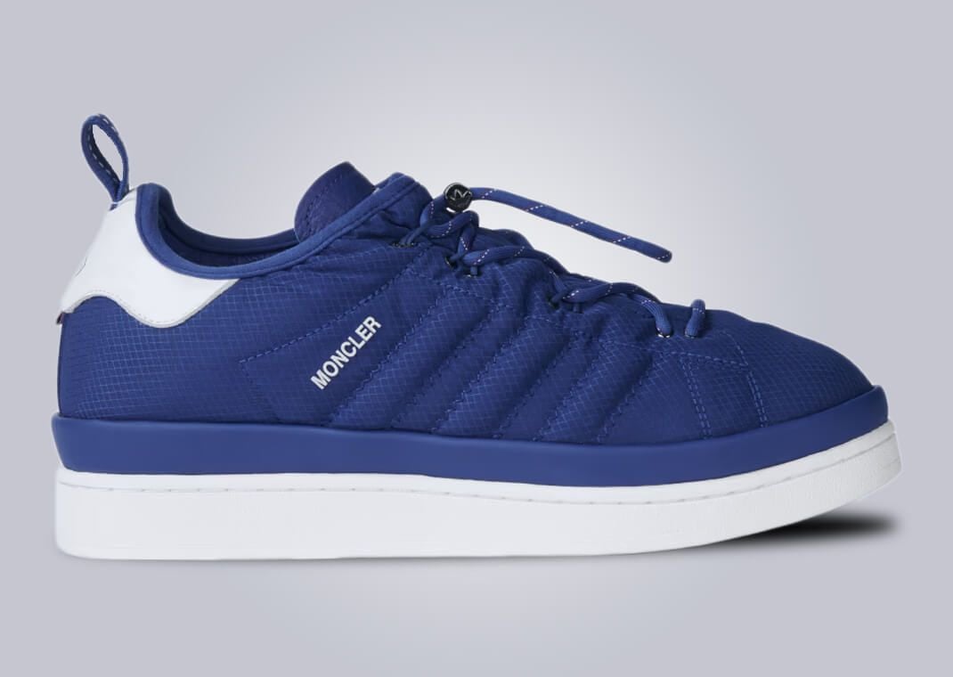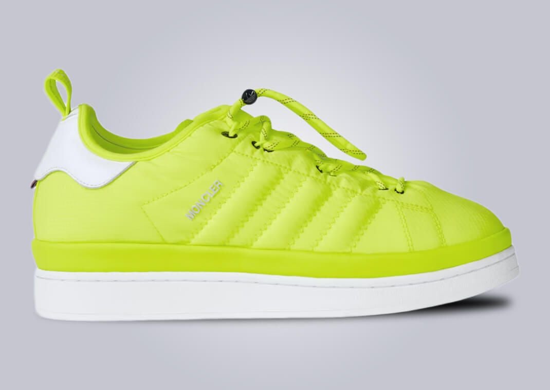 Following the official lookbook, early images of a puffy version of the adidas Campus with Moncler co-branding emerged. Like many of the pieces in the collection, the two colorways revealed feature vibrant eye-catching shades, one "Volt" and one "Royal." Moncler branding is placed near the collar in a silver finish with co-branded details landing on the internal leather tongue and heel tab. A standard adidas Campus midsole and outsole complete the look.