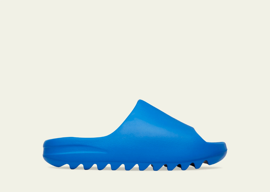 Inspired by Japanese sandals, the one-piece molded EVA foam gets completely covered in an Azure shade of blue, coming texturized like all-new colorways of the Slide have been since the Ochre release. Minimalistic branding lands on the heel of the footbed with a Three Stripes logo while “Yeezy” text and sizing info are debossed underneath the forefoot strap. Underfoot, the outsole utilizes a V-shaped groove pattern for optimal flexibility and traction.