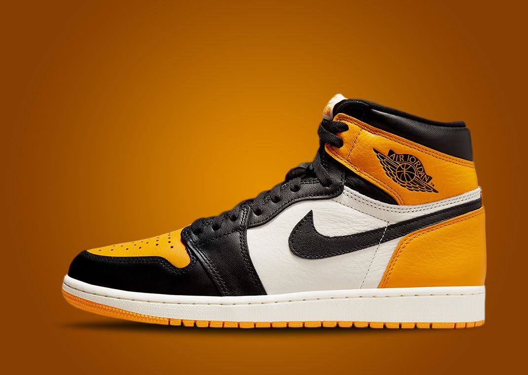 Coming in taxi, yellow and white, this Air Jordan 1 High sports a classic design, inspired by the original “Black Toe.” Sporting an all-leather upper, black covers the majority with white on the side panels and taxi yellow wrapping around the collar and heel. A black nylon tongue features a white tongue tag with OG “Nike Air” branding in yellow. Yellow insoles with black branding are finished off by a white Air cushioned midsole and yellow rubber outsole.