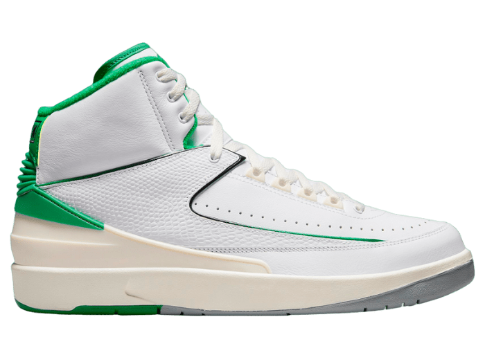 Michael Jordan may not have been a fan of the Celtics, but this version of his second sneaker definitely fits in with the team's uniform. White hues envelope the leather upper, while lucky green hues accent the piping of the midfoot panel, the sockliner, tongue lining, heel tab, and branding on the tongue.
