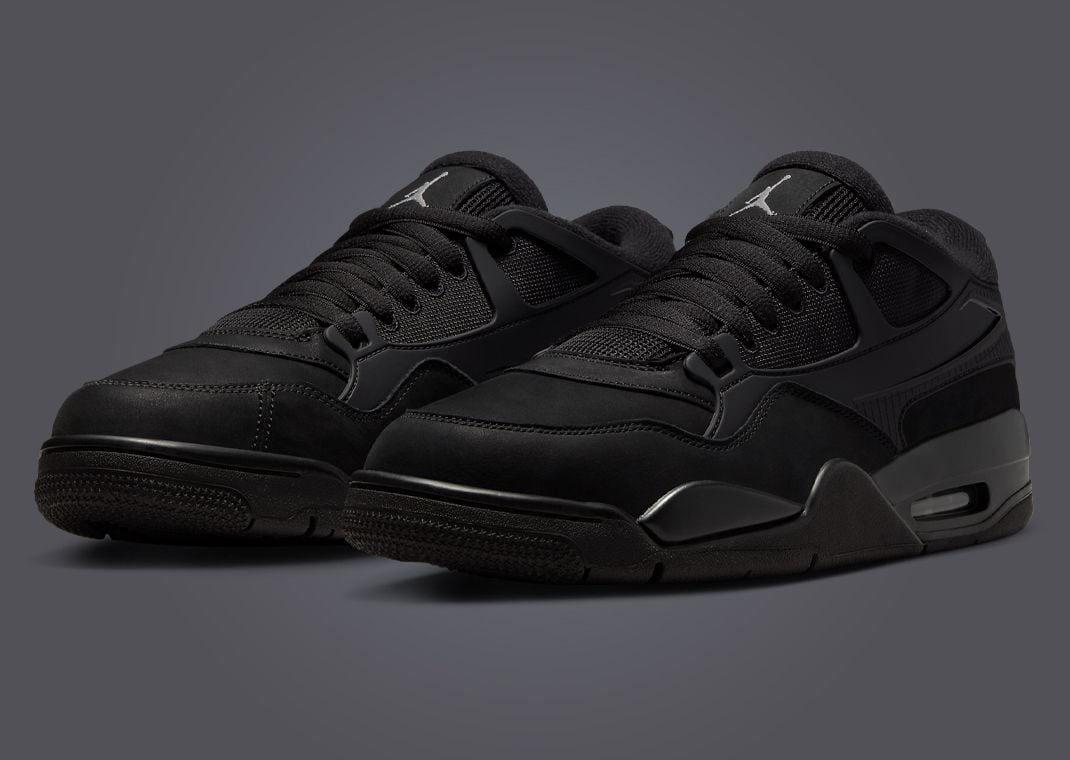 Set to drop for Holiday 2024, the Air Jordan 4 RM Black Cat comes in a clean black and white colorway. The entire sneaker is black-based, from the upper down to the outsole. Nylon and nubuck cover most of the upper, finished off by a cotton collar and lining. The modified cage on the sides comes in plastic, while hits of white come into play via the branding on the tongue tag, insoles, and back heel: a classic AJ 4 tooled midsole and outsole, all in solid black round things out for this pair.