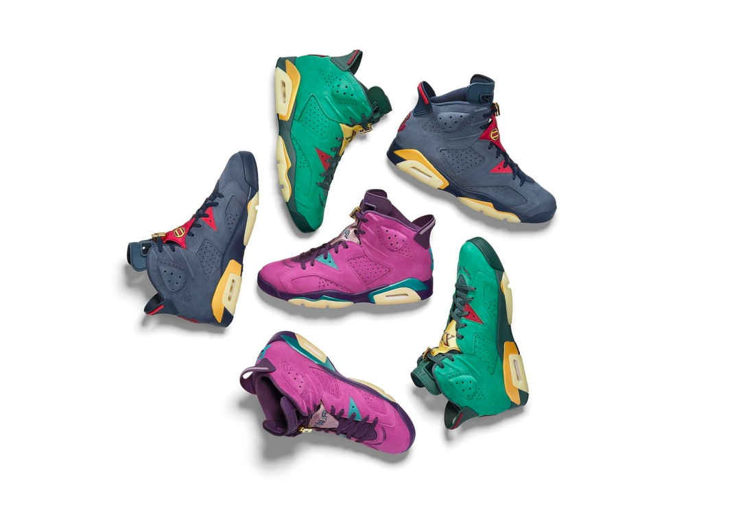 Nicknamed the “Fraternity” Collection, inspiration for this set comes from the fraternal bond that being part of Jordan Brand affords. Three unique player exclusive colorways of the Air Jordan 6 Retro were designed, with a Greek letter representing the different leagues that Jordan Brand athletes participate in: MLB, NFL & of course the NBA. Players ranging from Derek Jeter to Zion Williamson likely received these player exclusive Jordan 6's. Each pair features premium suede uppers, embroidery on the toe box and custom Greek branding on the tongue and back heel patch. Adding some extra flare, these AJ 6’s come in custom wooden boxes with “Welcome to the Family” across the inside lid in gold. The 2021 Jordan 6 PEs will come in Purple, Green, and Navy.