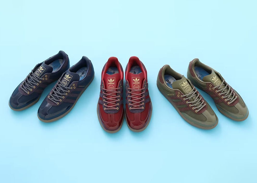 The ALWAYTH x adidas Samba Pack features three distinctive color schemes: Olive Strata, College Navy, and College Burgundy. Each pair is crafted using a combination of patent leather, durable canvas, and corduroy materials on the upper, ensuring both aesthetic appeal and weather resistance. The titular hue for each pair covers most of the upper, with accenting hits found on the corduroy portions, eyelets, and branding details.