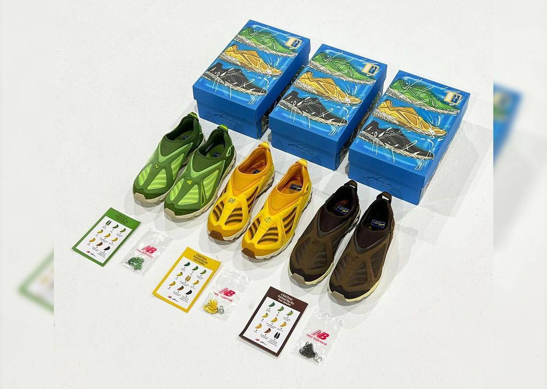 This new trio, consisting of Brown, Yellow, and Green colorways, is more than a mere addition to the roster; it’s a narrative of the banana's lifecycle, encapsulated in sneaker form. With a limited edition release of just 503 pairs—100 for the Yellow and Green and 303 for the Brown—the 610S Mini Mooz reflects the stages of ripening, from the fresh green of the early days through the ripe yellow to the mature brown. Each sneaker boasts a gradient mesh base, overlaid with suede in tones that match each stage of the banana's journey. Aminé's personal touch comes alive with his logo imprinted on the insole, while the creamy midsole and outsole offer a subtle contrast to the vibrant upper. The attention to detail extends to the unique banana charms that adorn each pair, signifying the ripeness level, accompanied by a card illustrating the banana's lifespan—a playful and inventive touch true to Aminé's aesthetic.