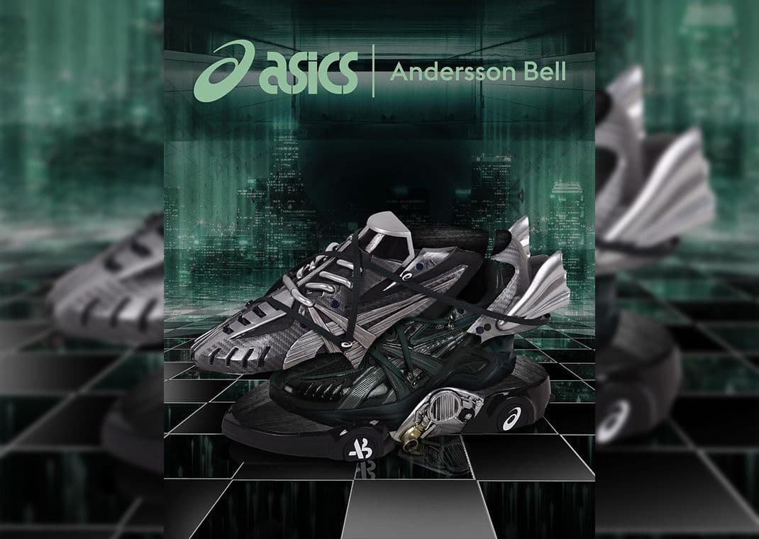 Though we have yet to receive actual product photos, the images shared on Andersson Bell’s Instagram showcase the three colorways infused into various artwork. The colorways mirror what each photo depicts with mossy greens, greys, and blues appearing on the shark-like boat, while a silver, grey, and black makeup takes on the form of a car. The final colorway is painted to appear like an ancient artifact being unearthed, coming in a sandy beige, snakeskin greens, and earth-tone browns. For its utilitarian upgrade, Andersson Bell throws an extra set of over-laces on top of the silhouette, weaving through hiking hooks all throughout. Underfoot, the three pairs will all feature the cushioning system of the Asics NOVABLAST 2 and a midsole/outsole combo that takes inspiration from the GELHOOP 6.