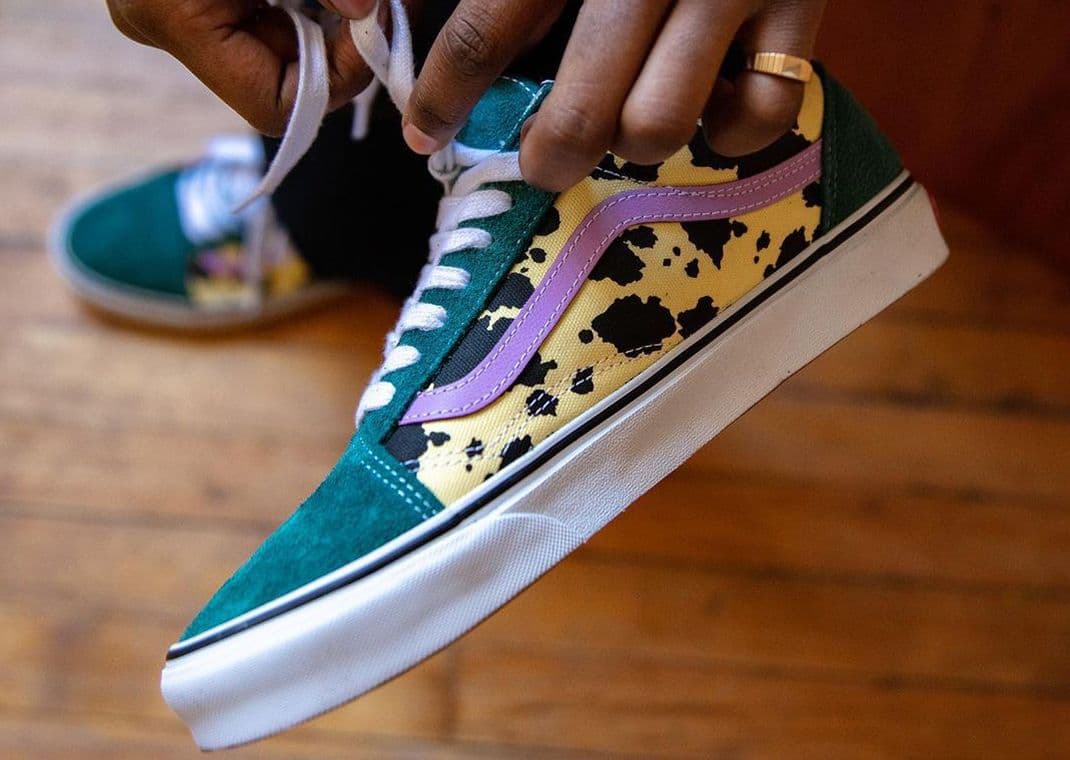 Keeping its usual suede and canvas construction, the sneaker features clashing shades of hunter green, purple, yellow, and black throughout its design. Green suedes take over the toebox, eyestays, tongue, and heel on one pair, with black on the other. Stark white laces pop in the center. Running along the midfoot is the iconic Vans Jazz Stripe in either a purple or black finish, resting atop a cow print-like yellow and black canvas. Though we don't have clear photos of the entire sneaker, expect to see co-branding details between Awake NY and Vans on the insole or on other parts of the model. Rounding out the entire design is the white vulcanized rubber midsole paired with a gum rubber outsole.