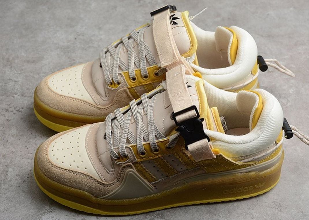 A barrage of new colorways from Bad Bunny and adidas continue to emerge. So far we’ve seen a tonal “Blue” and a tonal “Green.” Now the two are coming back to the earth-tone vibes with the Bad Bunny x adidas Forum Buckle Low “Beige.”