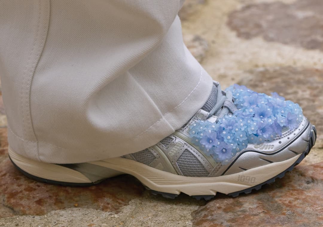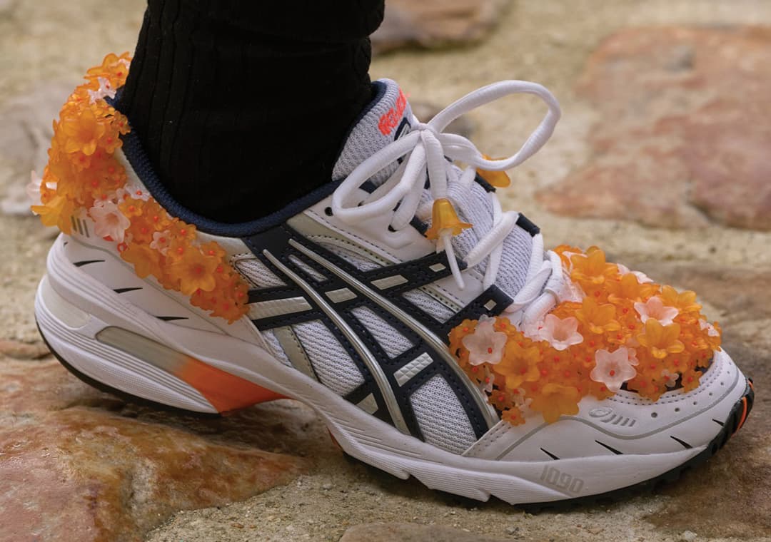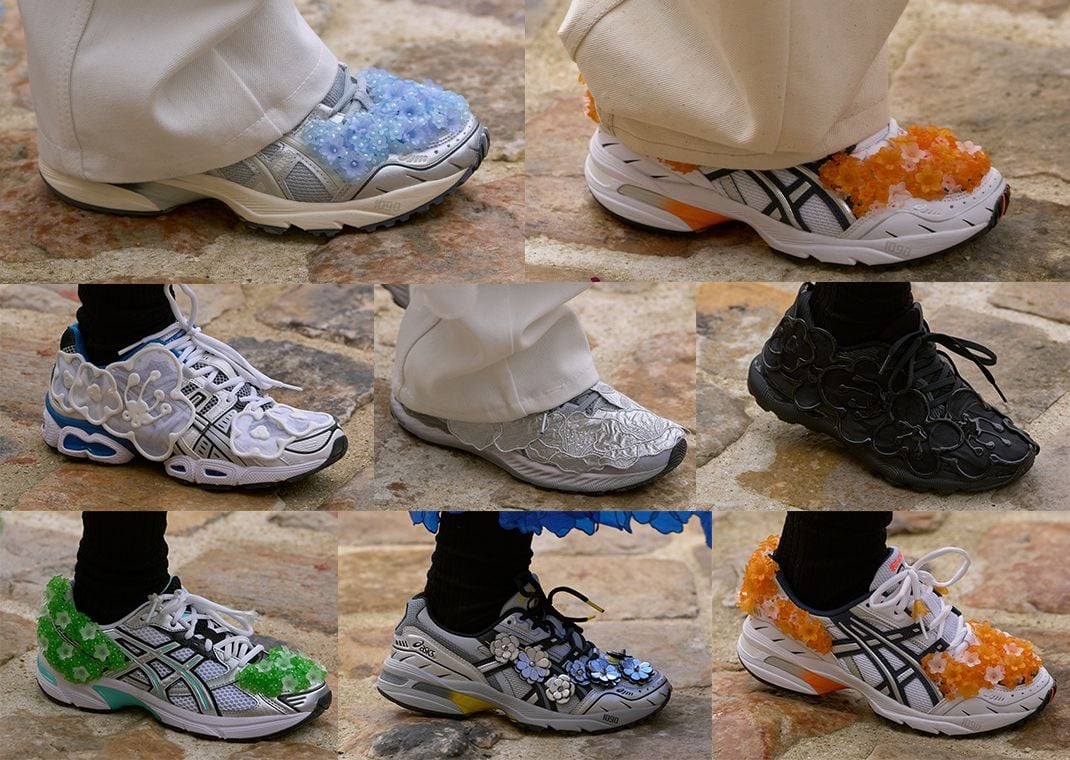Working on the GEL-1090, GEL-1130, and GEL-NIMBUS, each pair boasts a retro mesh and leather base to keep in line with the original ASICS designs. With that said, Bahnsen has added her signature floral motif to each pair for a look that we can't help but admire. While some pairs are decorated with little bouquets across the toe box and heel, similar to her Suicoke collab from 2020, others, like the GEL-1090, feature an explosion of metallic petals that perfectly complement the model's retro vibe. There's also a GEL-NIMBUS colorway that is flanked with lacy flowers across the lateral and medial side panels, and "Triple Black" options as well for sneakerheads who want something a little more subdued.
