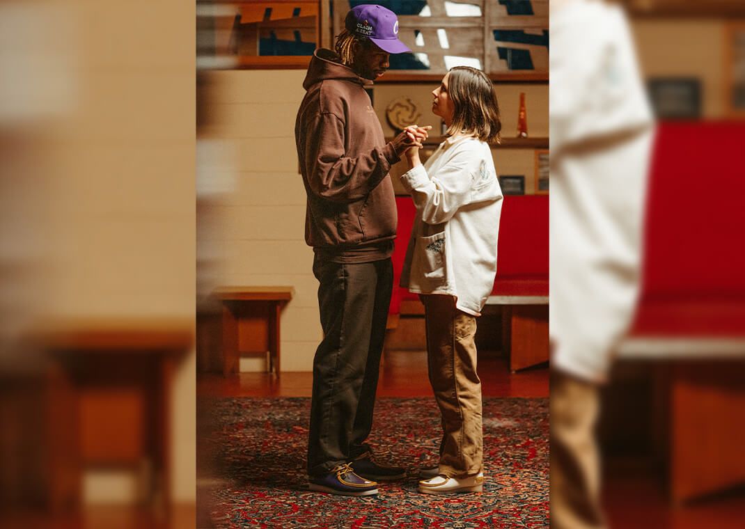 The upcoming Claima x Clarks Originals Wallabee Boot Pack presents a vivid duo of colors: a rich Purple and a crisp White. Both versions flaunt meticulous accent stitching and luxe leather detailing along the upper's edges, coupled with raw leather laces reinforcing the shoe's premium aesthetic. A striking detail that stands out is the contrasting heart design on the toe. This emblem, a nod to Katelyn, showcases an inverted color play - white on the Purple iteration and purple on the White. This blend of shades not only adds a playful touch but also symbolizes the memories and inspiration drawn from the couple's recent travels. Anchoring the design is Clarks' signature white crepe sole, known for its durability and comfort.
