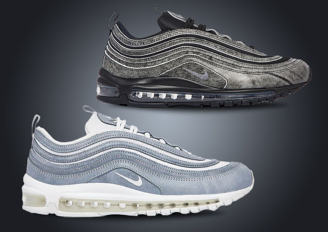 A part of their FW22 collection, CDG unveiled their typical boundary-pushing designs in the fashion world. Seen on the feet of some of the models was what appears to be the next collaboration with Nike, the Nike Air Max 97 in two new iterations. Both of these colorways appear to take a more minimal approach compared to some of the past models the brand has put its spin on. Coming in either black or blue, the black-based colorway appears to have the standard construction of an Air Max 97, however, a weathered texture appearing on the upper adds to the high fashion aesthetic of worn-in looks that have dominated the space for the past few years. The blue-based pair also sports the same worn-in look, though not as noticeable due to the color, giving the leather on the upper an almost stone-washed denim look.
