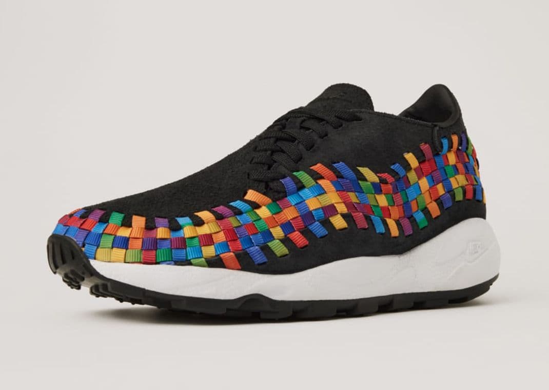 Nike Air Footscape Woven: Returning in a new Rainbow variant, this sneaker features a black upper and true-to-OG tooling. The colorful woven accents add a playful touch to the otherwise understated design, perfectly blending classic and contemporary styles.