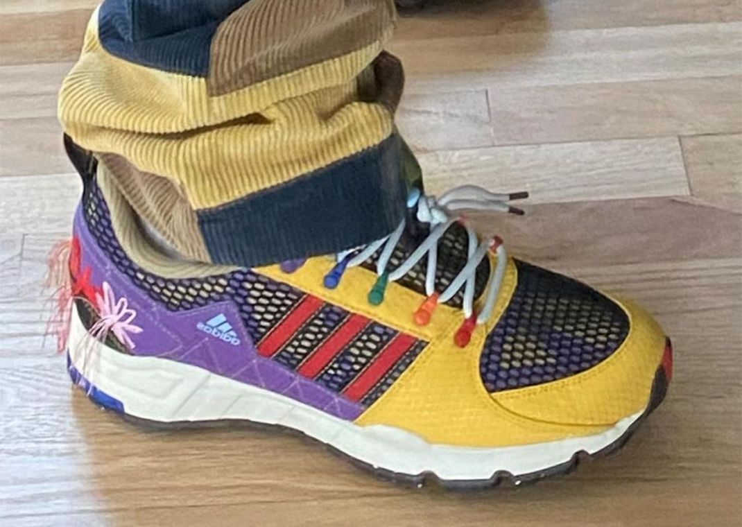 To express his love for Earth and vegan lifestyle, Sean’s take on the adidas EQT Support ‘93 will feature all vegan and recycled materials, mirroring adidas’ push towards sustainability. Dressed in multicolor fashion, the upper consists of yellow and black mesh overlays with hits of red and purple seen on the mid foot and heel. Rainbow colored eyelets run up the tongue with white laces weaving in and out. The heel portion contains a signature piece of SW x adidas collabs, embroidered flowers with loose threads hanging down. Paired to a white midsole and black outsole, the vintage and vegan aesthetic is felt throughout the design.