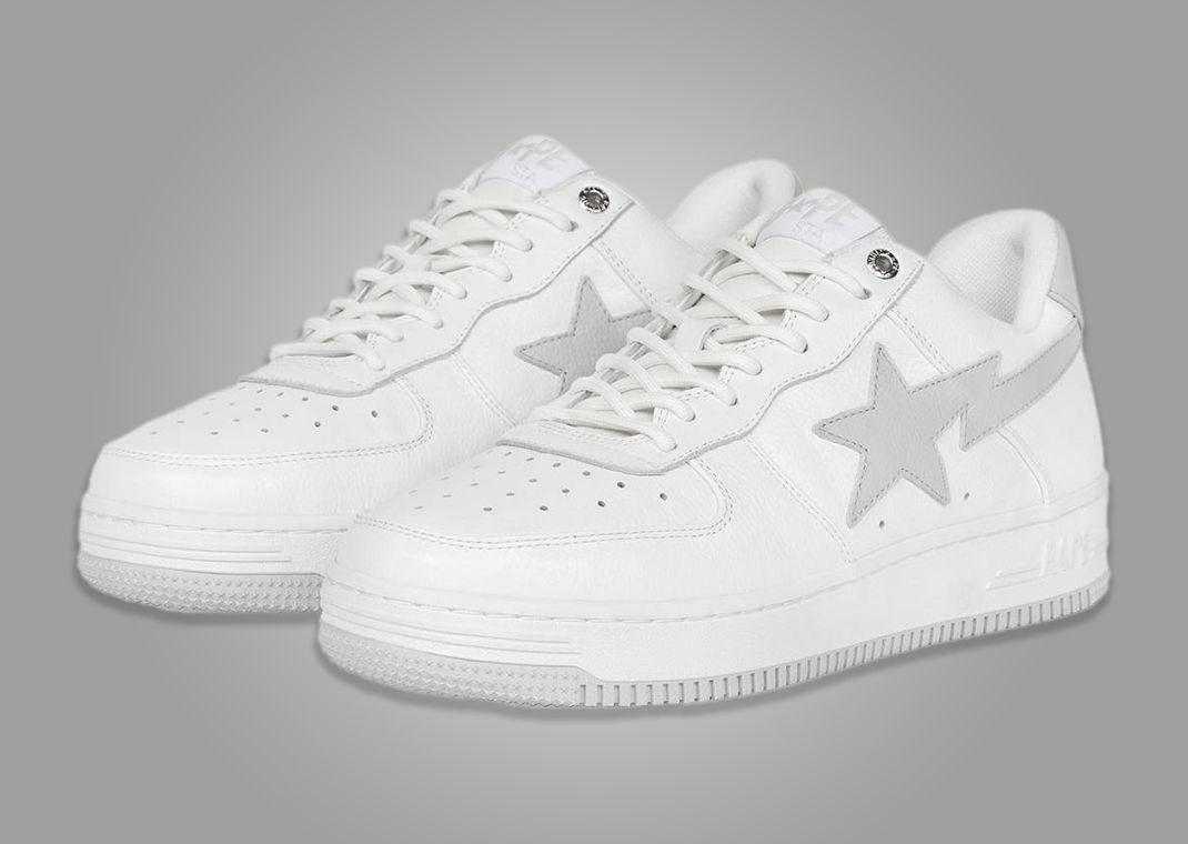 Coming dressed in a premium tumbled white leather upper, the JJJJound x BAPE BAPESTA Low matches the apparel collection with its accenting cool grey. Seen along both sides of the mid-foot, the iconic Bape Star branding is dressed in the aforementioned grey tumbled leather. Wrapping around to the heel, grey makes its way to the dual branded JJJJound and BAPE heel tabs. Further JJJJound branding can be found stamped on the insole. Finishing up the design is the white midsole matched to a grey rubber outsole. Packaged in a muted grey BAPE camo shoebox, the two brands find harmony among their wildly different design philosophies.