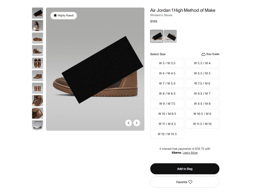 There are no Air Jordan 1 Retro High OGs on the website to “ban,” but plenty of different AJ1 variants are affected by the black bar. This includes the Air Jordan 1 Mid, Air Jordan 1 Low, Air Jordan 1 Method of Make, Air Jordan 1 High Golf, and even the Air Jordan 1 Brooklyn Boot. For those unfamiliar with the “banned” storyline, Nike advertised in 1985 that showed Air Jordan 1s on Michael Jordan’s feet with black bars covering most of the sneaker, referencing that the NBA was fining MJ for violating the league’s uniform policy.