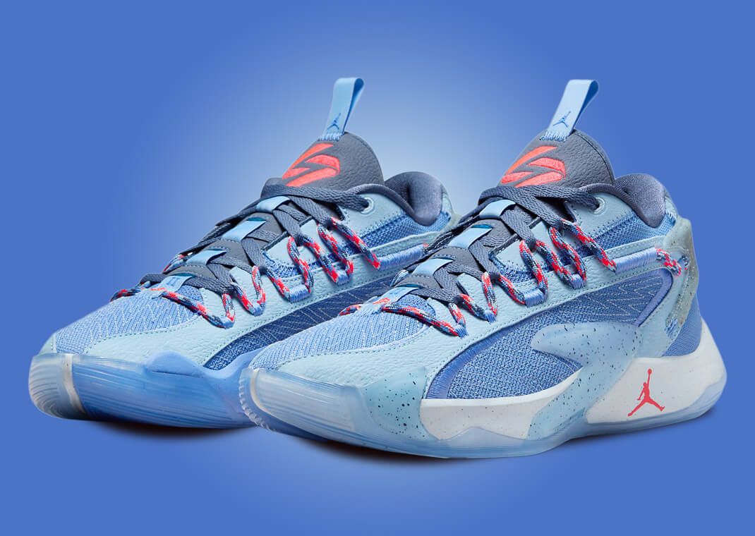 Varying hues of blue envelope the Luka 2’s upper, which contains engineered mesh and TPU, to evoke the namesake lake in Northwest Slovenia. The pop of red on the branding details atop the tongue and lace set elevates the design while retaining Jordan's heritage. Recycled portions come via the tongue's foam, as well as stitching and internal tooling throughout the sneaker. The shoe boasts full-length Formula 23 foam and Cushlon 3.0 on the medial side. Both are encased by a white midsole, with a blue outsole completing the sneaker's design.