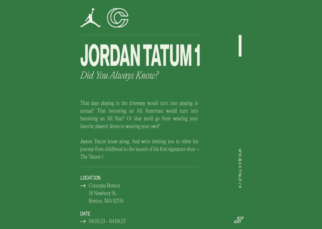 The Jordan Tatum 1 Zoo is set to release on April 7th, 2023 through Nike and select Jordan Brand retailers online and in-store. Coming in full family sizing, the retail prices are as follows: $120 (men), $90 (GS), $75 (PS), and $55 (TD). An early release will take place exclusively at Concepts Boston between April 5th and April 6th. Details for this event can be seen below. Keep it locked to our Twitter and the Sole Retriever mobile app for more updates on the Tatum’s signature line with Jordan Brand and more in the sneaker and streetwear world.