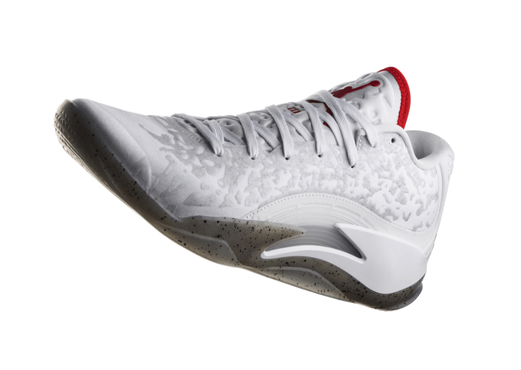 The upper reflects Zion’s journey, featuring a color splatter produced using 3D imaging of Zion’s foot splashing through mud. More than just an artistic touch, the upper is strategically reinforced to contain the foot during intense lateral movements through these TPU pieces.