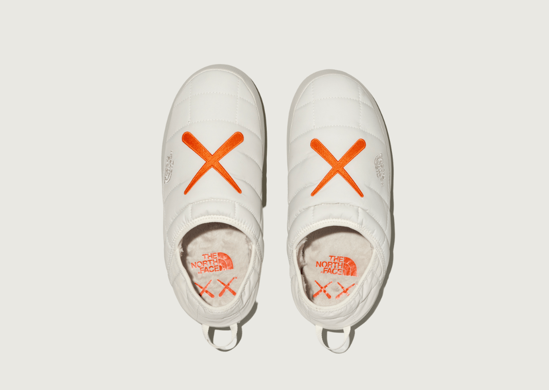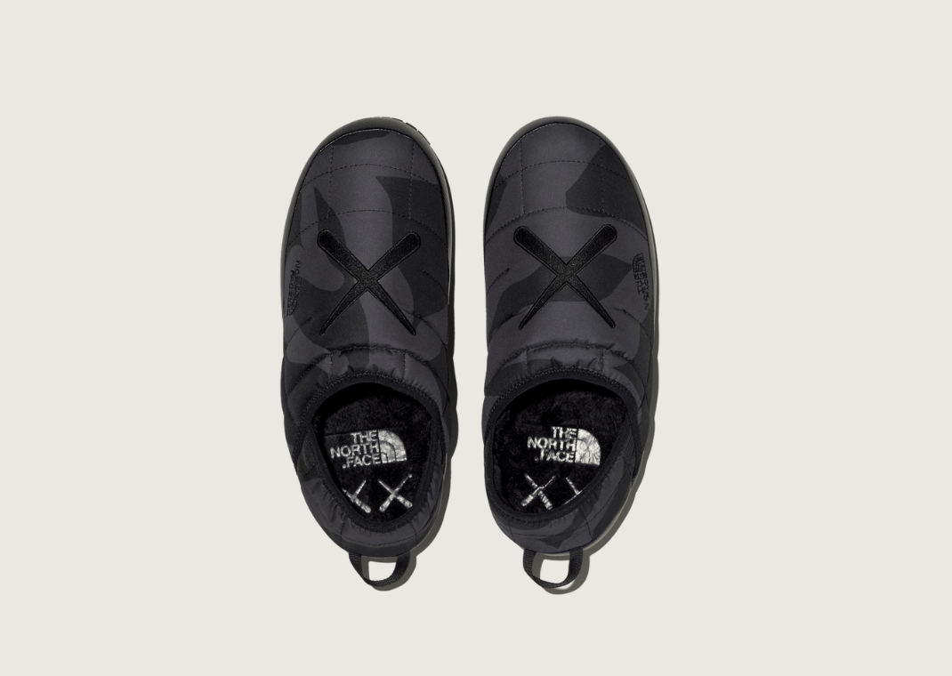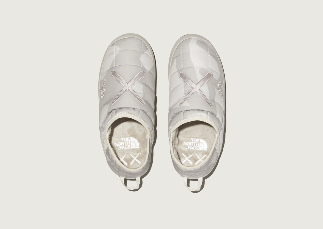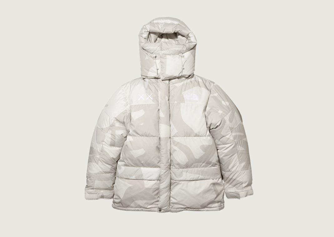 Taking archival pieces from the aforementioned TNF Expedition System, we’ve got a cross-pollination of design on the 1996 Nuptse Jacket, 1995 Denali Jacket, 1986 Mountain Jacket, and a range of clothes - hoodies, sweatpants, short/long-sleeves, mitts, duffle bags, and the ThermoBall Traction Mule. Each article of clothing is offered in two neutral tones, white or black, and comes with co-branded details featuring KAWS’ “XX” logo and the standard TNF logo. While hoodies, beanies, sweatpants, tees, and half of the ThermoBall Traction Mules come in solid tones, the true technical wear pieces get doused in a subtle camo print that comes in a tone not too far off from the base layer.