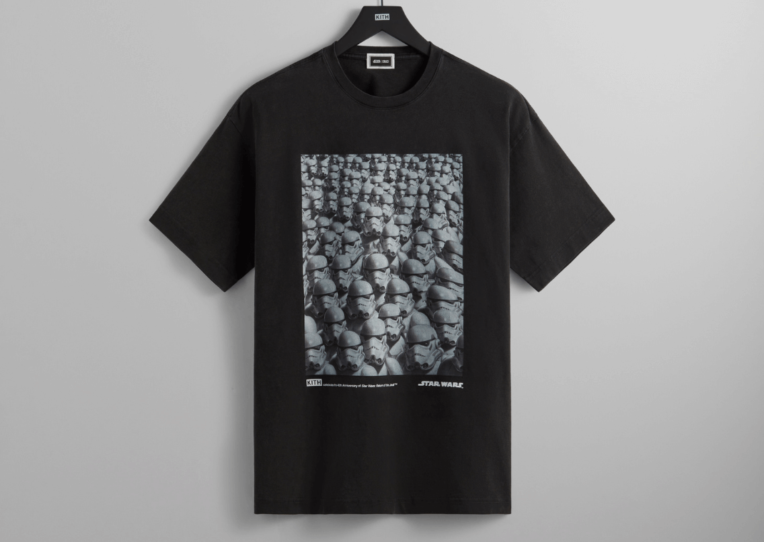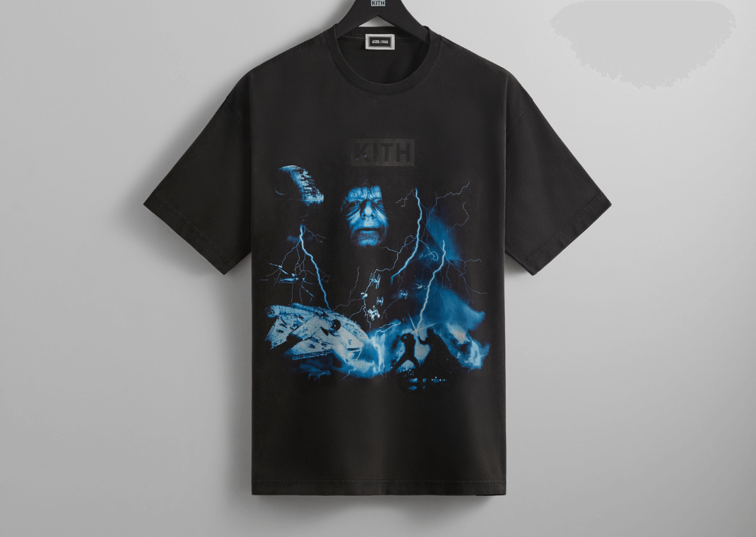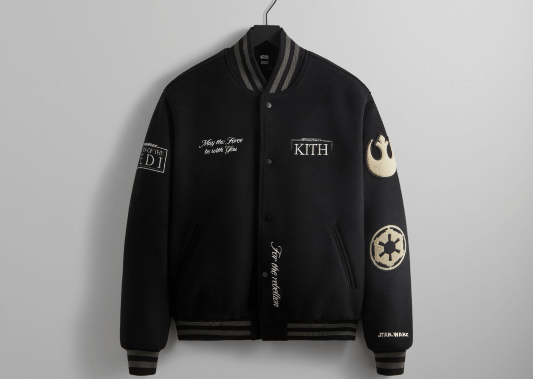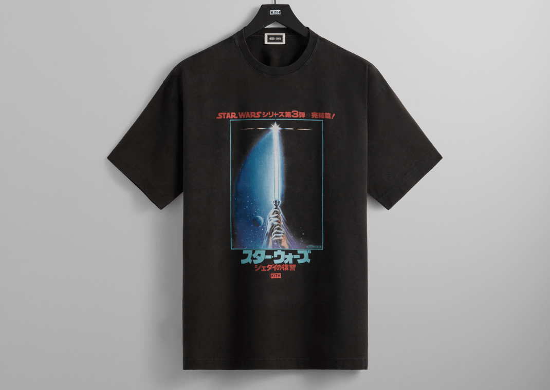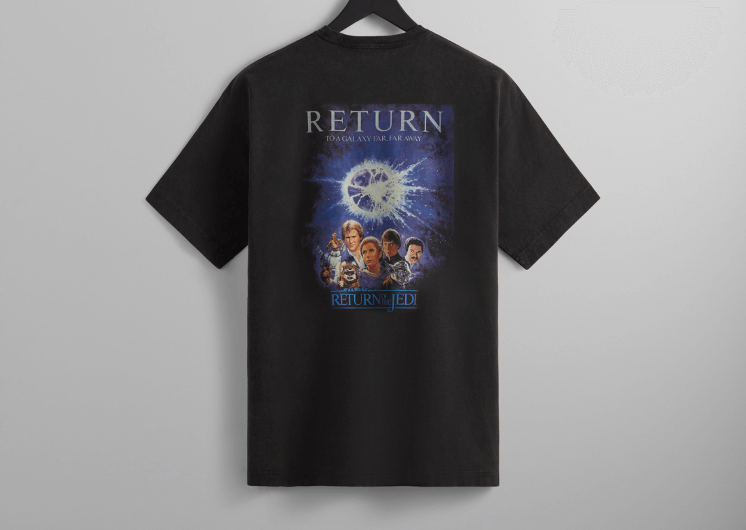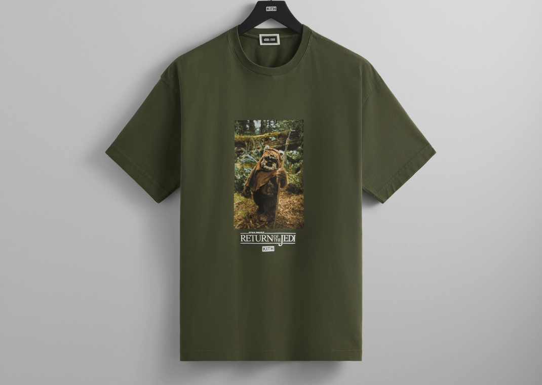 The collection will include men's and kid's apparel, accessories, and home goods. To celebrate the collaboration, Kith is offering free screenings of Return Of The Jedi at the Village East Angelika Theater in NYC May 3. Tickets are free, and sign-ups will open on the Kith App April 28. Winners will be selected by 10 a.m. EST May 1.