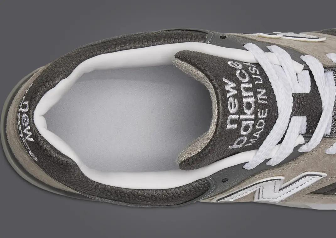 The sockliner, crafted from white leather, complements the grey hues, adding a clean touch to the overall design. Additional white elements include the lace set and the New Balance Made in USA branding on the tongue. The sneaker is completed with a dual-tone grey and white 997 midsole, offering superior cushioning and support, paired with a durable black and grey rubber outsole.