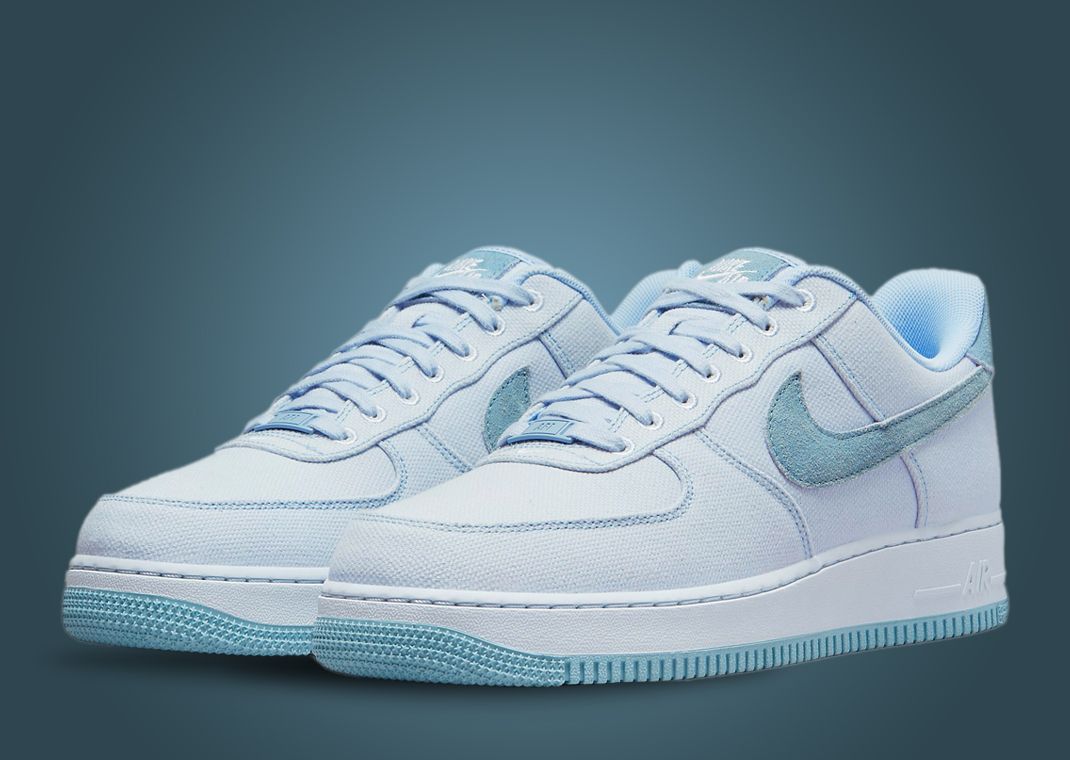 Constructed out of canvas and suede across the upper, shades of blue dress these materials. The canvas underlay and overlays come in a light blue hue, mimicking a dip dye process done on an all white pair of kicks. Laces come in the same hue, working up to a suede Nike Air branded tongue tag dressed In a deeper blue. This deep blue also covers the suede Nike Swoosh that wraps around the heel to the suede heel tab. Finishing the look is a stark white midsole and blue outsole.