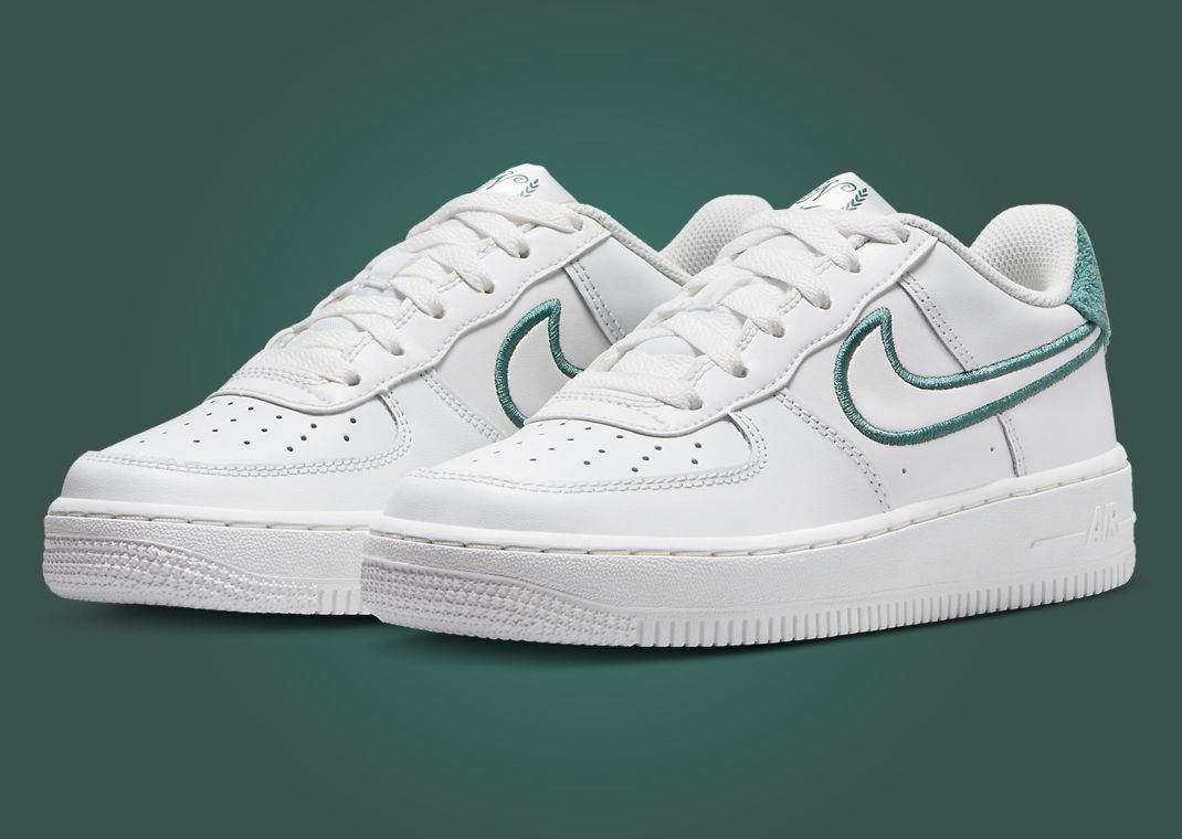 Dressed predominantly in summit white leather, the Nike Air Force 1 Low Resort and Sport has hits of bicoastal green via the custom branding on the tongue tag and insoles, terry cloth back heel tab, and embroidered Swoosh on the sides. The details in bicoastal further the Sport & Resort vibe with elements you would see if you were staying at a beach resort. All this sits atop a solid, white rubber sole with Air cushioning in the heel.