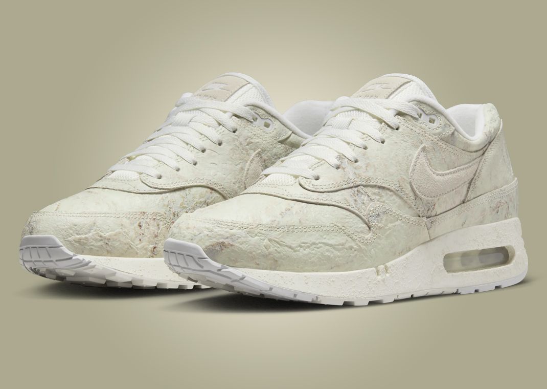 The Museum Masterpiece edition of the Air Max 1 ‘86 is a marvel of design, transforming the classic silhouette into a wearable piece of art. The sneaker's upper is treated to resemble a piece of marble, complete with natural imperfections and subtle color variations that give the material its timeless appeal. Suede details on the Swoosh blend seamlessly with the marble motif, enhancing the sneaker's premium aesthetic. At the same time, the mesh on the tongue and sockliner opt for a slightly whiter shade, adding depth to the overall design.