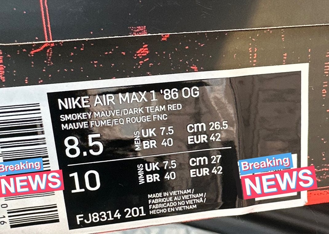 The Nike Air Max 1 '86 OG Smokey Mauve Dark Team Red will be released in 2023 through Nike and select retailers online and in-store. Coming in men's sizing, the retail price is set at $150. Keep it locked to our Twitter and the Sole Retriever mobile app to stay updated on the latest releases, raffles, news, and more in the sneaker and streetwear world.