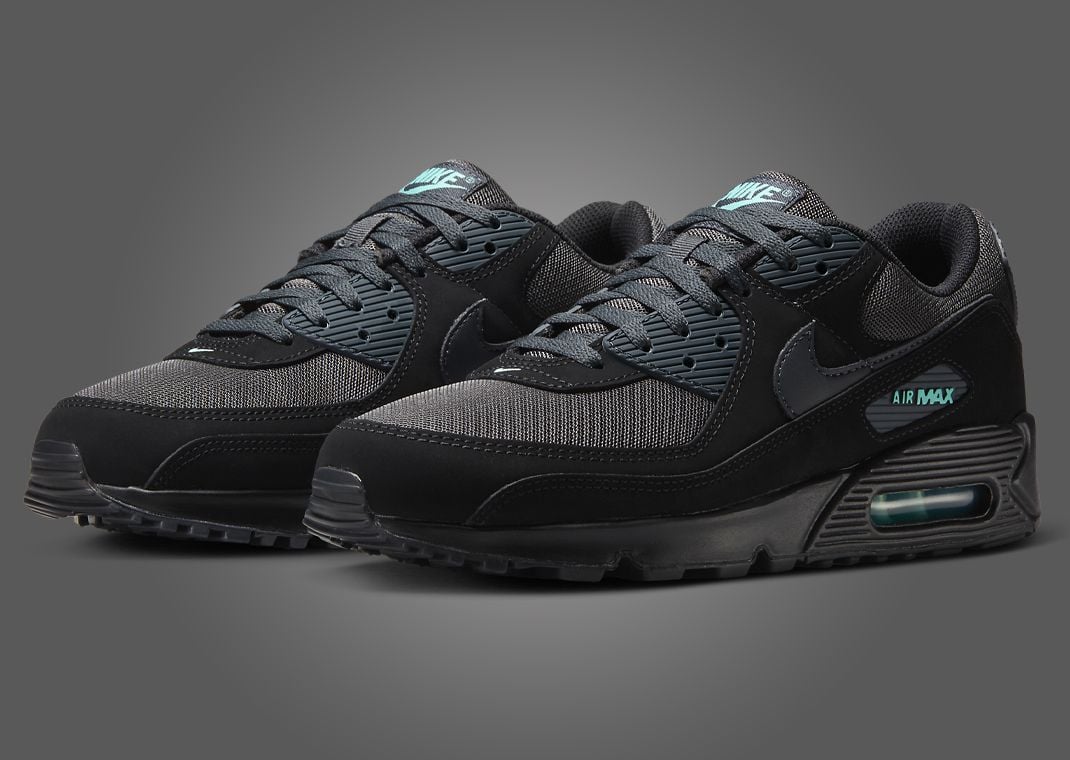 Although not officially affiliated with the legacy jeweler, the Air Max 90 Tiffany borrows the aesthetic and color palette from the brand’s Air Force 1 collaboration from 2023. Black suede panels land on the mudguard, midfoot, vamp, and profile panel, while the mesh base comes in an anthracite hue. This dark grey hue continues onto the tongue and collar, as well as the lace set and TPU eyestays. Branding details are where we see the unsanctioned Tiffany homage, as the Swoosh on the vamp, the Nike text atop the tongue, heel, and insole, and the Air Max logo on the lateral heel all come in a shade similar to the brand’s iconic hue. Underfoot sits a black Air Max 90 midsole with Tiffany blue-like hues placed inside the visible Air unit paired with a black rubber outsole.