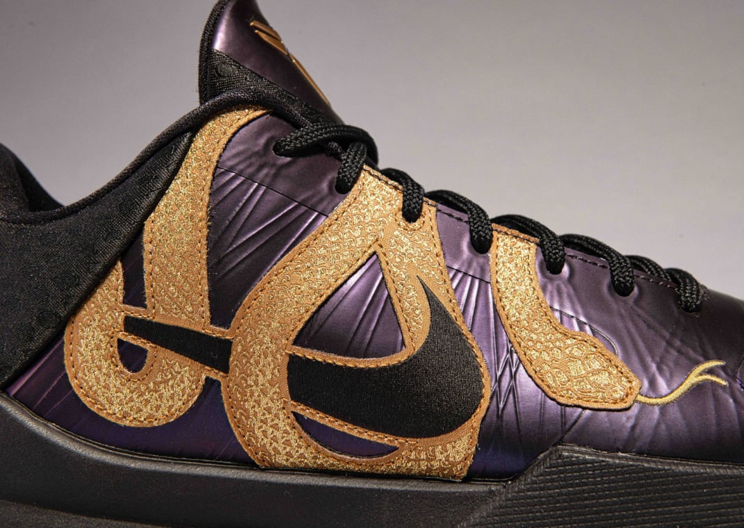 The Year of the Mamba Collection is headlined by the Kobe 5 Protro, with two “Year of the Mamba” editions being offered. One pair comes in an iridescent Eggplant colorway featuring graphic nods to Kobe's storied career and Mandarin text referencing the Year of the Snake on the tongue. Another direct nod to the Chinese zodiac is found on the upper, with a golden snake slithering across the lateral midfoot. On top of this Eggplant pair, Nike has crafted a University Red colorway that will remain exclusive to China.