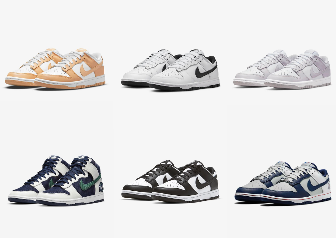 A total of seven dunks ranging from the Nike Dunk Low Black White (in both women's and men's) to the Nets colorway are all hitting Nike.com.