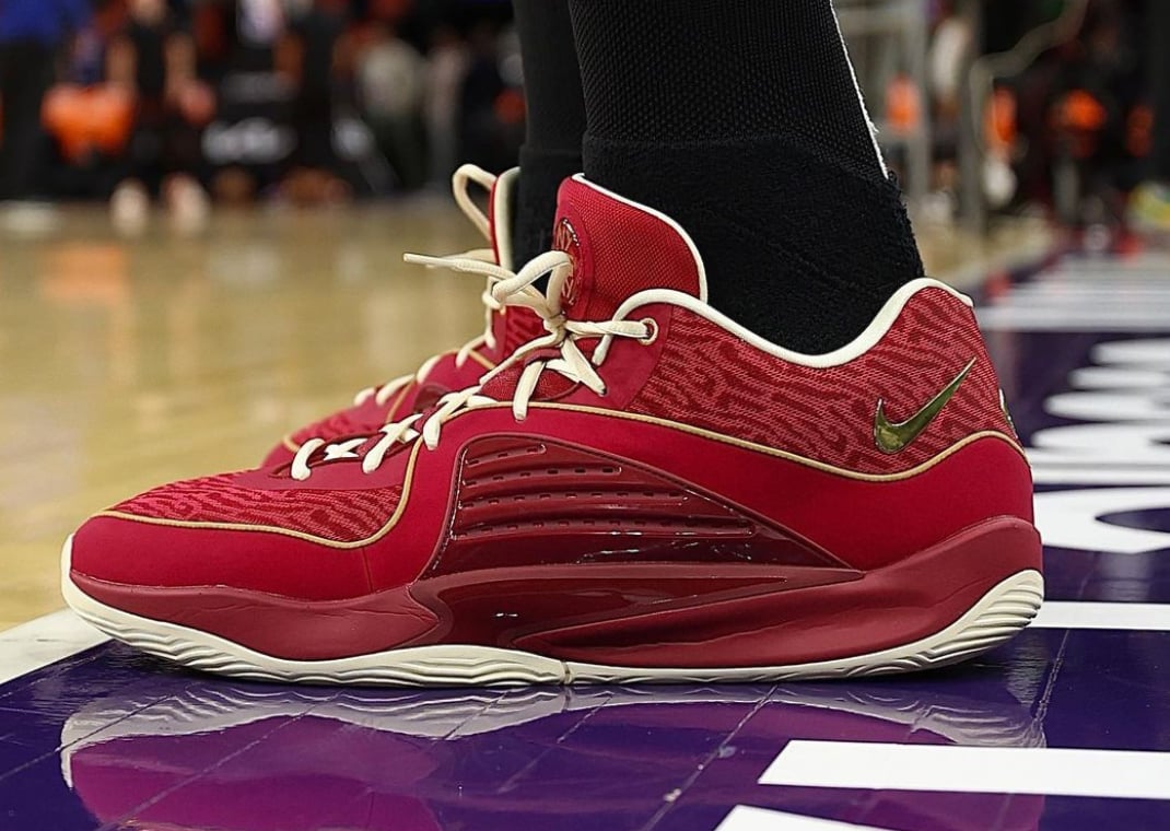 Official tech specs on Durant’s latest performance basketball sneaker are still to come, but we can see this NY vs. NY pair boasts a vibrant mix of red, cream, and metallic gold with a low-top construction. Across the upper, we see a combination of leather and mesh with the latter receiving an animal print. Durant branding finds a home on the tongue, which features a lenticular finish with the phrase “NY vs. NY.” Metallic gold accents hit the Swoosh logo along the collar and the “Easy” logo on the heel, while creamy hits take over the lace set and internal lining. Underfoot sits a red foam midsole and creamy outsole.
