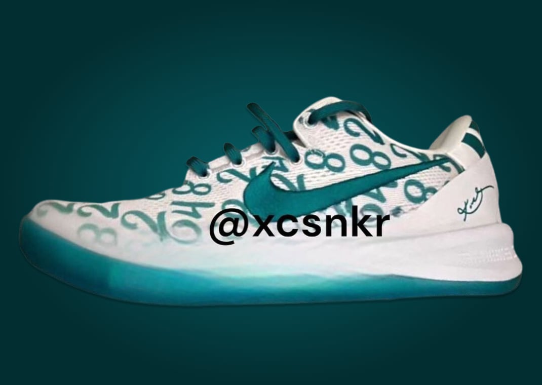 While it’s taken some time for us to receive more Kobe sneakers from Nike, the faucet is beginning to open up. Following the reveal of the Nike Kobe 8 Protro in White Court Purple, another white-based rendition is on the horizon in White Radiant Emerald.