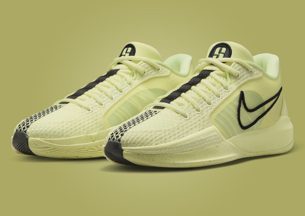 The shoe's design is further elevated by including Sabrina Ionescu's logo, prominently displayed on a circular panel on the tongue, symbolizing her influence and partnership with Nike. Performance-wise, the Sabrina 1 doesn't disappoint. The midsole is crafted from partially recycled foam and features Nike React and Zoom Air cushioning. The luminous green midsole is complemented by a matching outsole, which features a distinctive black accent that bisects the sole unit, adding to the sneaker's look.