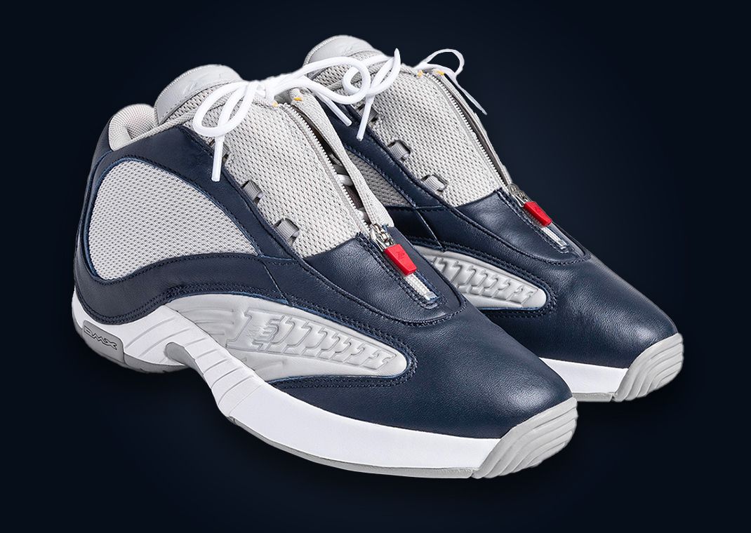 Dubbed the “Ultramarine” edition, the Packer x Reebok Answer IV draws inspiration from AI’s unique demeanor and style of the late 90s/early 00s. His influence on and off the court sparked a generation of followers that is unmatched. The Reebok Answer IV “Ultramarine” comes in a classic navy and grey colorway. Featuring a combination of mesh and leather on the upper, the hits of red are a nod to Iverson’s glory days. 3M reflective detailing, a white DMX cushioned midsole and grey outsole finish things off.