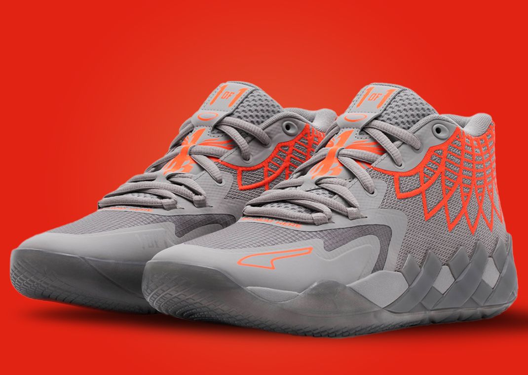 The Puma MB.01 “Grey Infrared” as the name suggests, comes in a two-tone grey and infrared design. The upper comes in what Puma calls “Monomesh,” a lightweight and supportive material on foot. Plastic fused overlays add to the structure, making up the eyestay and mudguard. Bird Wings are stitched in infrared from mid foot to heel where Melo and Puma co-branding is present. Throughout the entire sneaker descriptions for LaMelo including: “Not From Here” and “1 Of 1” are present on the bottom and top of the tongue respectively. For cushioning, Puma provides Nitro-Foam under-foot, encapsulated by a smokey grey rubber midsole. A translucent rubber outsole in the same smokey grey covers the word “Rare” underneath, wrapping up this stylish colorway.
