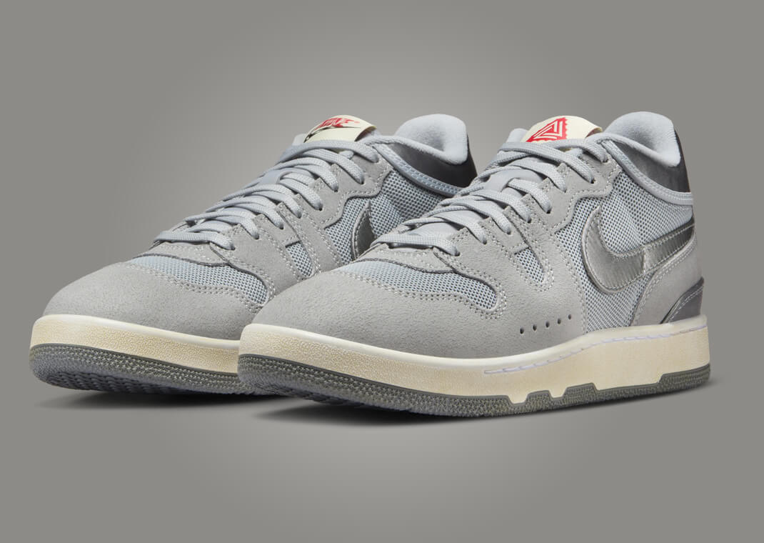 Drawing inspiration from the OG colorway, the Social Status' latest Nike Mac Attack is a harmonious blend of past and present. The silhouette's historical all-leather blueprint undergoes a noteworthy alteration by introducing cracked suede overlays in a sophisticated grey, harmonizing with the 3M mesh underneath. The vibrant yellow ochre gracefully contrasts as it touches the lace set and the Nike branding on the heel tab. Further reinforcing the collaborative spirit is the red-tinted tongue tag featuring a split Nike and Social Status logo. However, the true essence of this pair's innovative design philosophy lies in the satin material of the Swoosh, collar, and heel overlay. A delightful revelation awaits the wearer, as with time and wear, a concealed black suede emerges, exuding an ashy grey hue on the surface. This compelling design narrative culminates with the nostalgically aged Mac Attack midsole paired seamlessly with an aged grey rubber outsole.
