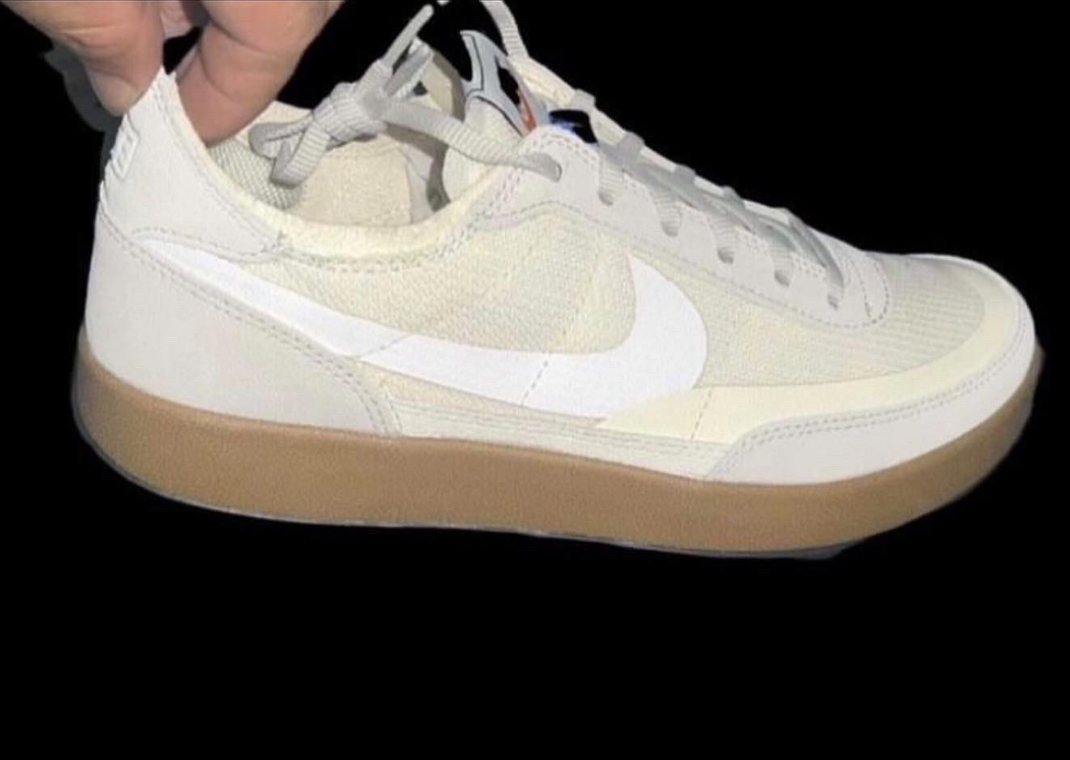 Reminiscent of a Nike Killshot, the Tom Sachs x Nike General Purpose Shoe boasts a muted colored upper comprised of a cream mesh base paired with a tan suede heel and toe cap. Killshot cues continue on through the sneaker's gum outsole. Nike branding comes in the form of a white Nike Check on the sidewalls and "NIKE" embossed on the suede heel tab. Blue pull tabs and "NIKE CRAFT" printed insoles round out the silhouette.
