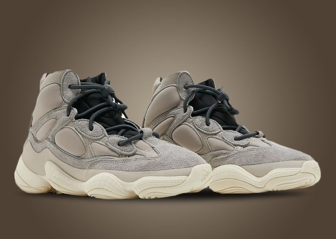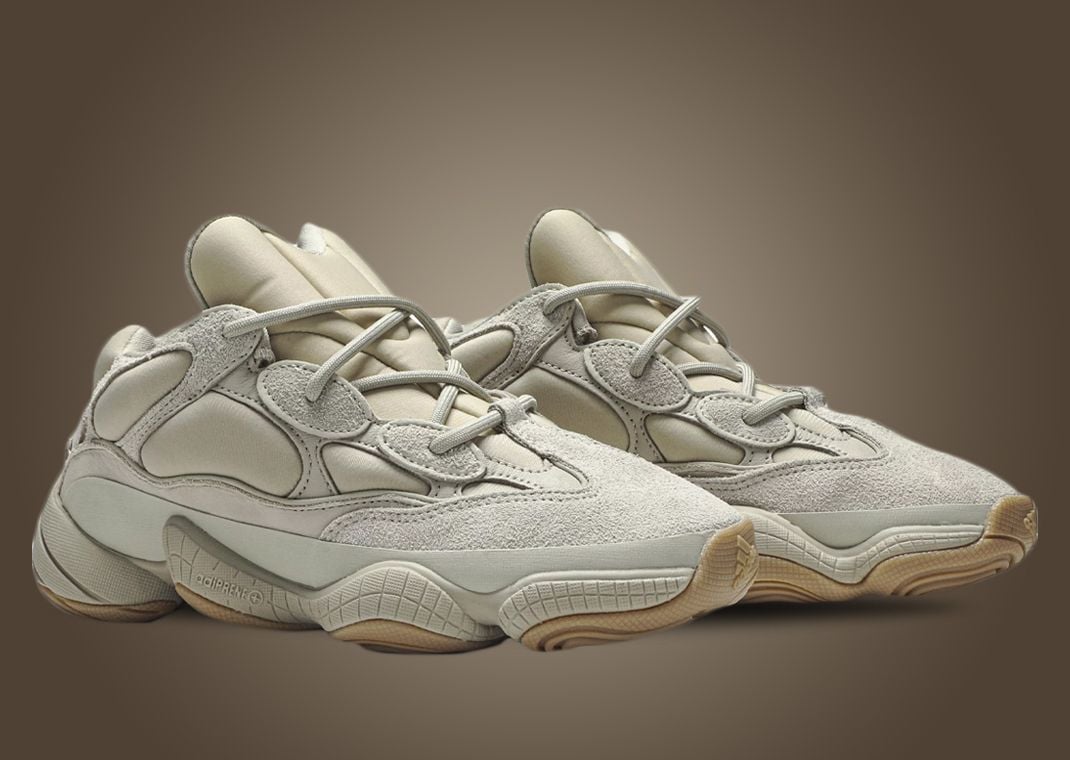 Near the tail end of 2019, it seemed like Ye was playing around with material choices on his silhouettes as releases like the Yeezy 700 Magnet swapped out mesh for neoprene as its base layer. The Yeezy 500 Stone joined in on this party and eventually led to the high-top variant of this model featuring neoprene as its base layer. Covered in an almost golden-hued tan on its underlay, the suede panels come in a desert tan shade with a matching adiPRENE+ midsole. For the outsole, a classic gum rubber was utilized. Laces received a change as well with all other colorways getting flat laces similar to the Yeezy 700 while this pair joined the Yeezy 350 V2 with its thick rope laces in a tonal tan shade.