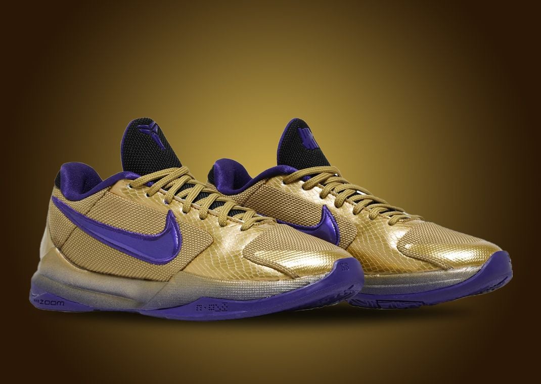 Kobe Bryant was inducted into the 2021 NBA Hall Of Fame posthumously by his wife Vanessa Bryant and fellow Hall of Famer, Michael Jordan. In celebration of this momentous occasion, Nike linked up with LA-based retailer, Undefeated on a special edition colorway of the Kobe 5 Protro. Chock full of details, this "Hall of Fame" edition sports a gold-based upper with snakeskin detailing, purple accents, mis-matched colored Swooshes on the sides, and more. The final result, a pair fit perfect to honor the legacy of the Black Mamba.