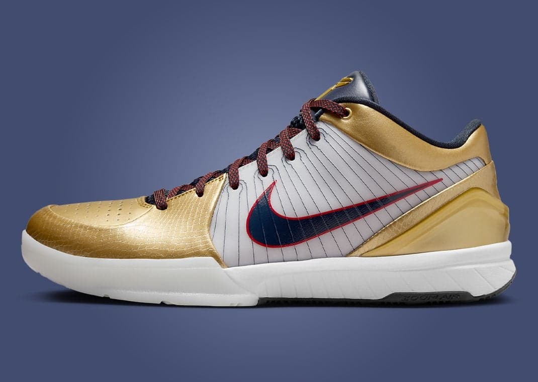 Although Kobe Bryant himself never wore the sneaker, the Nike Kobe 4 Gold Medal was released in 2009 to commemorate the 2008 USA Men's Basketball team and Kobe Bryant's stellar performance during the 2008 Summer Olympics. This year, the sneaker returns triumphantly, staying true to its original design with a metallic gold, red, white, and blue upper that echoes the colors of the American flag. Inside, a gold medal graphic pays homage to Kobe's Olympic achievements and the historic gold medal win. This release honors the past and brings a beloved piece of basketball history back to fans, offering a nostalgic nod to one of the greatest players the game of basketball has seen.