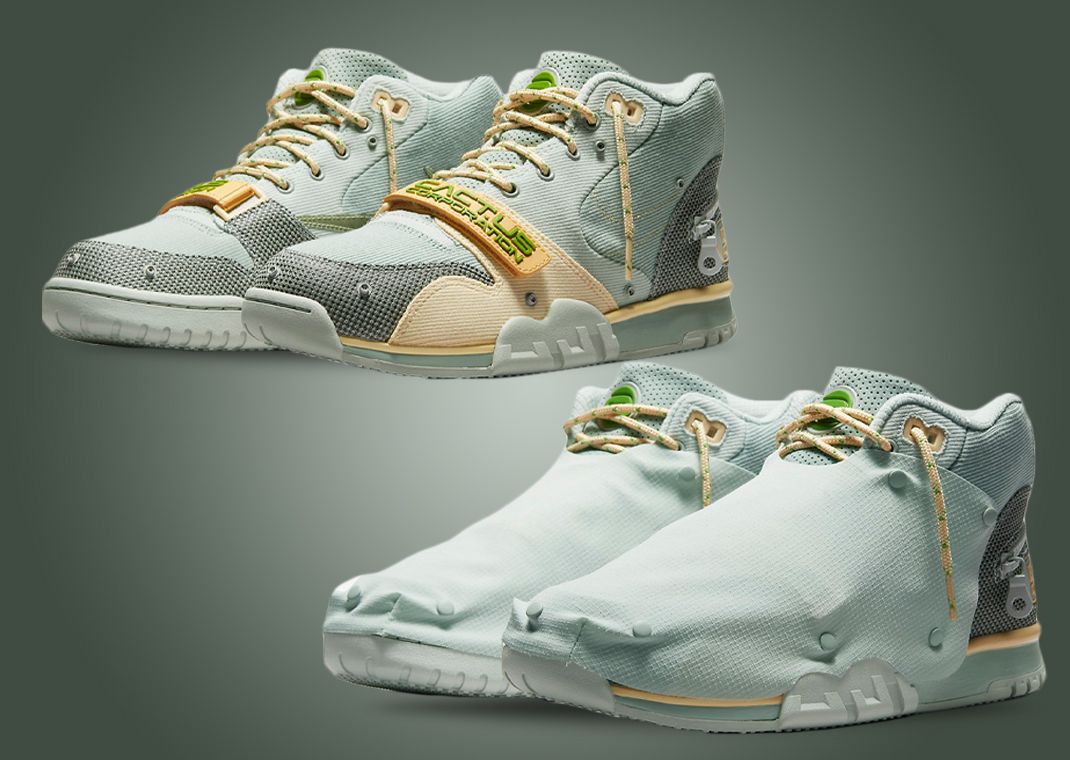 Unlike many of Travis Scott’s previous releases, the Air Trainer 1 “Grey Haze” forgoes the earth-tone browns and instead utilizes a mix of grey haze, tan, and olive across the canvas upper. Shades of grey don the toebox, midfoot, and rear of the sneaker while the lockdown strap and laces come in a mix of bright tan and green. CACT.US Corporation branding sits above the previously mentioned lockdown strap and heel while its “CC” logo can be found atop the perforated tongue.