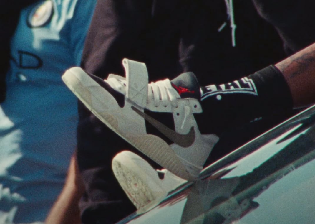 Following this, Scott was sitting courtside at the Los Angeles Lakers game wearing a "Sail" colorway of what is believed to be the Jordan Jumpman Jack TR. For its sole unit, it appears similar to the Air Tech Challenge 3, the same sneaker the Air Yeezy II’s sole unit was based on. Another photo from a reported music video shoot in Paris gives a clearer picture of the profile of the sneaker and its reverse Swoosh logo.