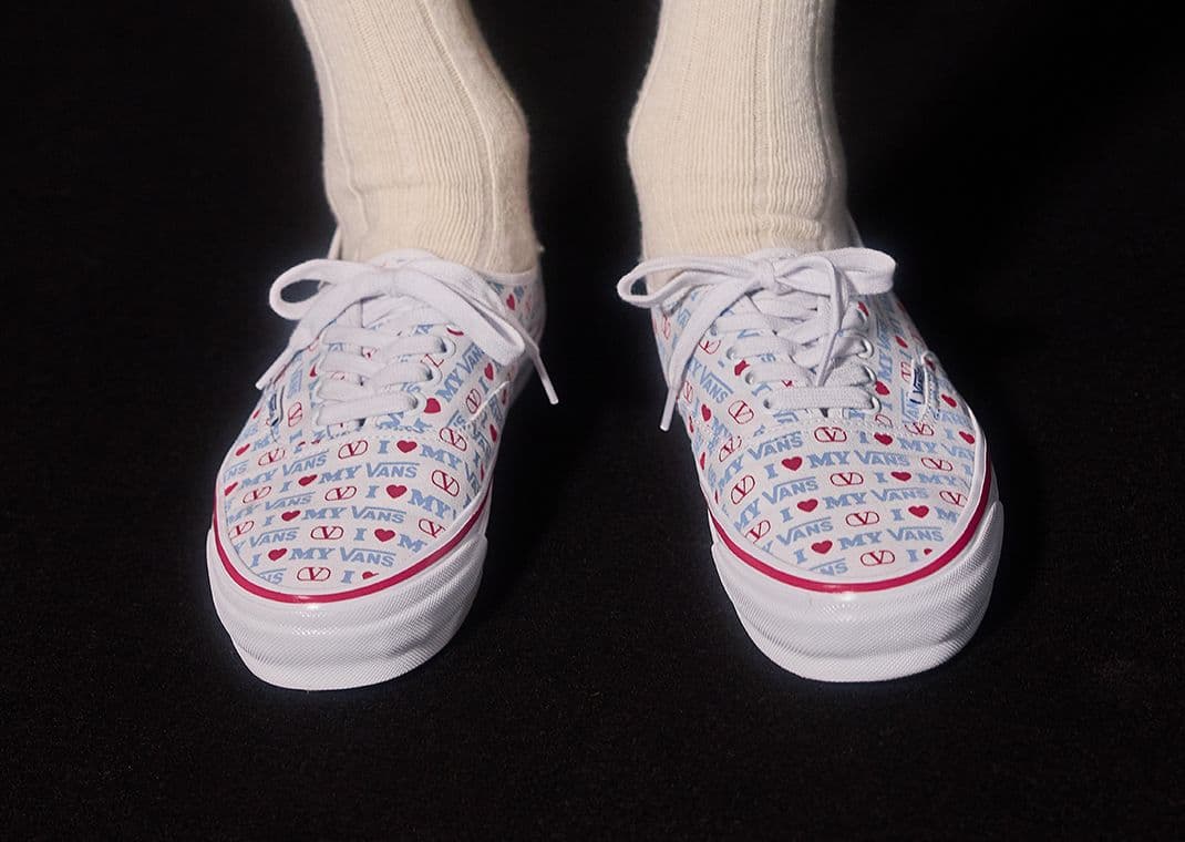 The 65-year-old fashion house partnered with Vans on the latter’s Authentic silhouette, seen in four different colorways that each hit the runway over the weekend. All opt for a graphic pattern-laden upper, some leaning into Vans’ iconic checkerboard pattern and others presenting a fusion of Valenino and Vans logos. The white-based colorway has a tonal canvas upper, contrasting red and blue logos plastered across the upper, reading “I love my Vans” with Valentino and heart logos.
