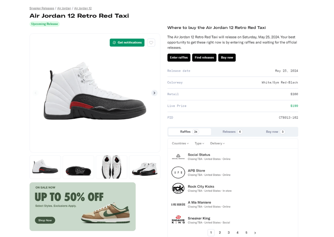 - Enter raffles: there are plenty of raffles open for the Jordan 12 Red Taxi