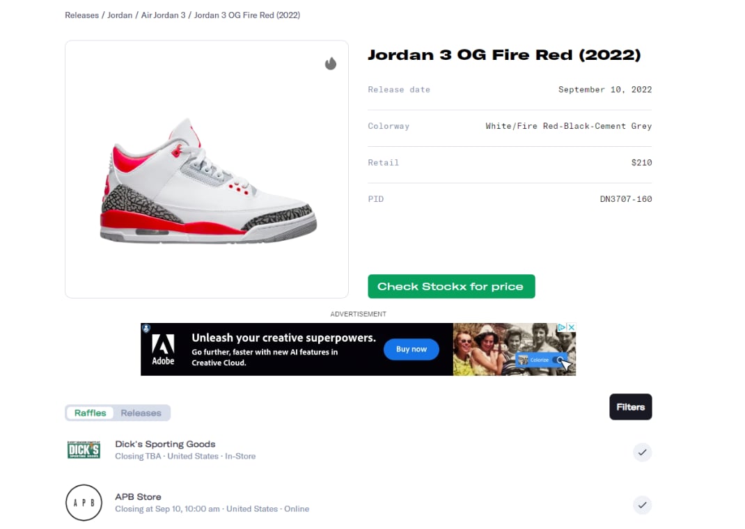 Sites releasing the Air Jordan 3 Retro OG Fire Red