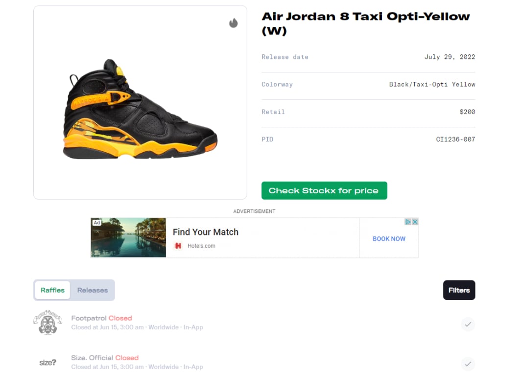 Raffles to enter for the Air Jordan 8 Taxi Opti Yellow (W) - (updated regularly)