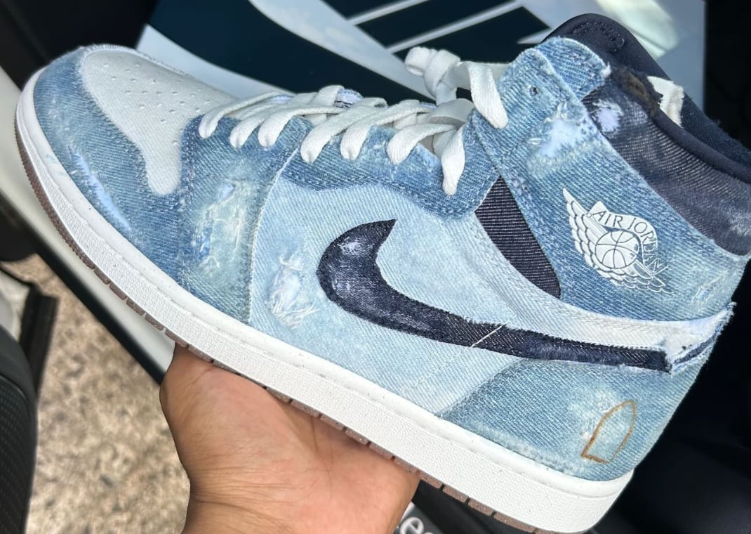 For the Denim AJ1, Who Decides War adds more stonewashed and distressing to the denim upper and adds its logo to the lateral heel. According to Ev Bravado, this pair is limited to 150, though it’s unknown if it will see a retail release or is just a friends and family custom.